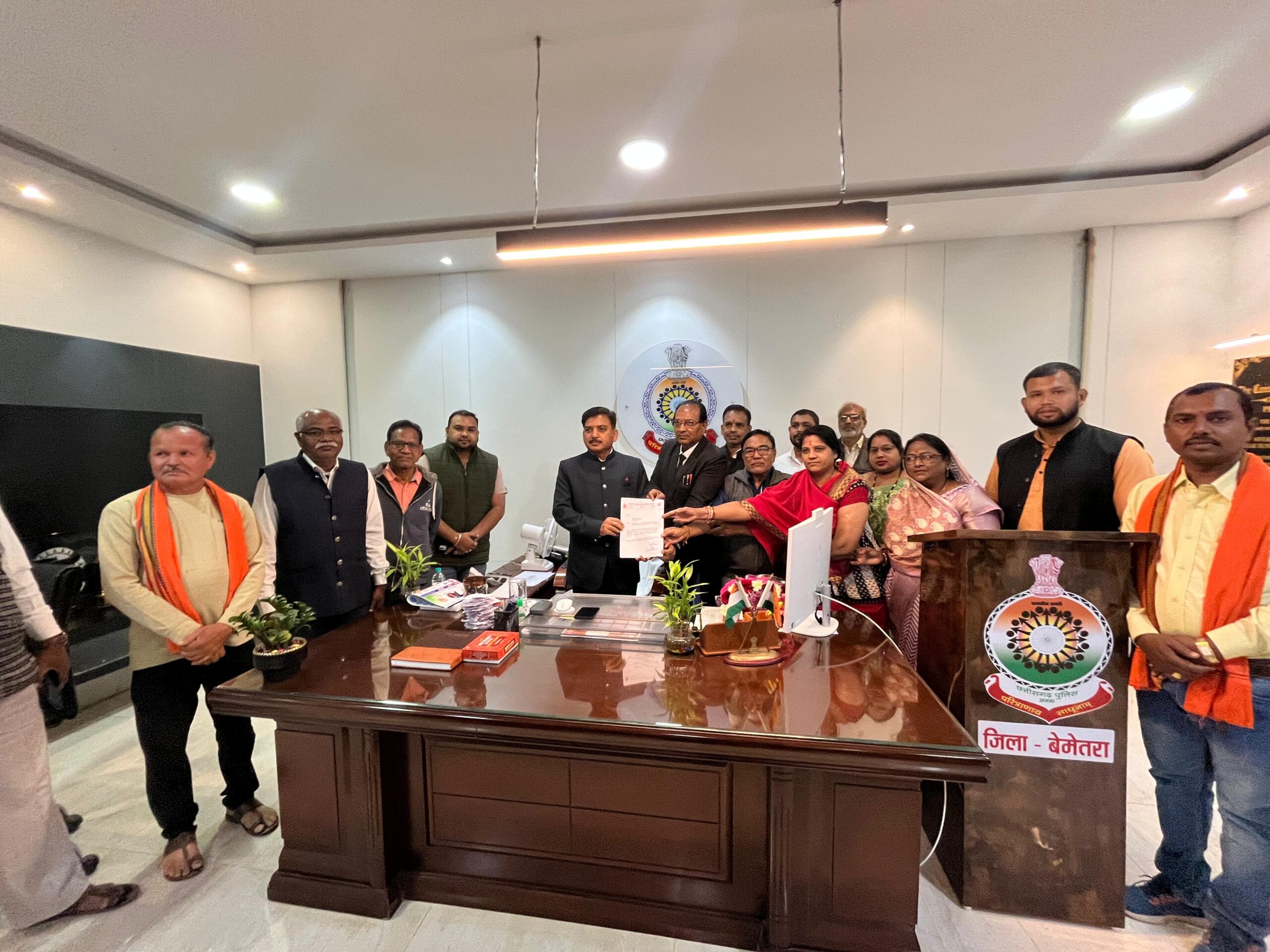 बेमेतरा।साहू समाज के जिला अध्यक्ष नारद साहू के नेतृत्व में समाज के पदाधिकारी आज पुलिस अधीक्षक कार्यालय पहुँचे, जहाँ उन्होंने एसपी को एक ज्ञापन सौंपा।